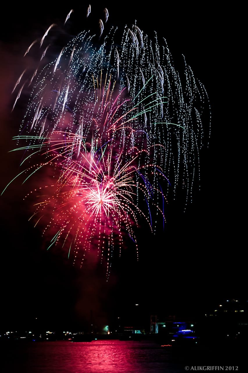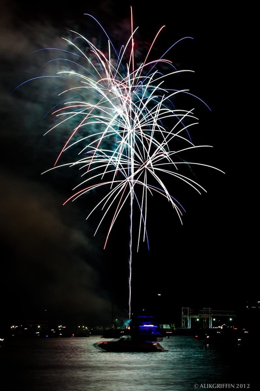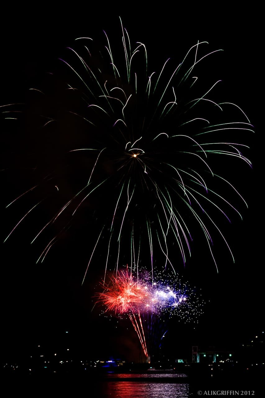 Shooting fireworks can be tricky, but it really isn’t that hard. Shooting with a fairly stopped-down aperture and a slow shutter speed is important. Most of these photos were shot at around an f/16 with a shutter between 10-30 seconds. I also shot with bracketing of 3 photos at two stops for these photos. The camera was set to aperture priority. This gave me three shots, all with slightly different shutter speeds, for more variety.