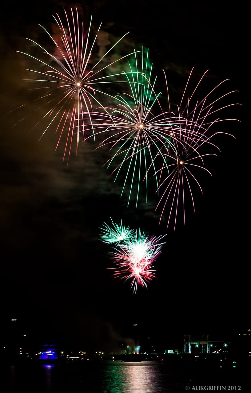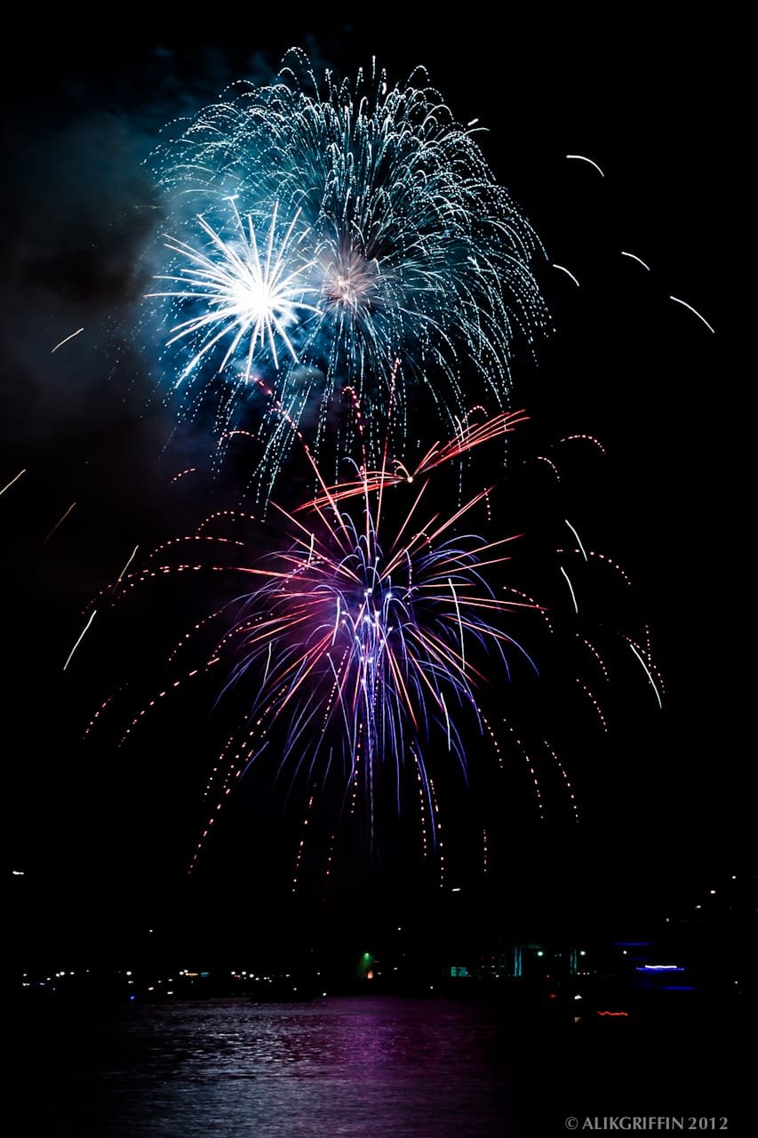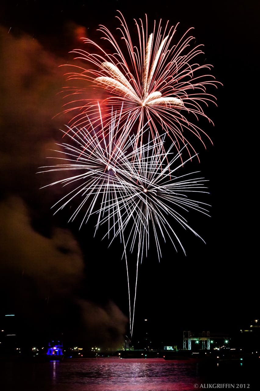 Shooting fireworks can be tricky, but it really isn’t that hard. Shooting with a fairly stopped-down aperture and a slow shutter speed is important. Most of these photos were shot at around an f/16 with a shutter between 10-30 seconds. I also shot with bracketing of 3 photos at two stops for these photos. The camera was set to aperture priority. This gave me three shots, all with slightly different shutter speeds, for more variety.