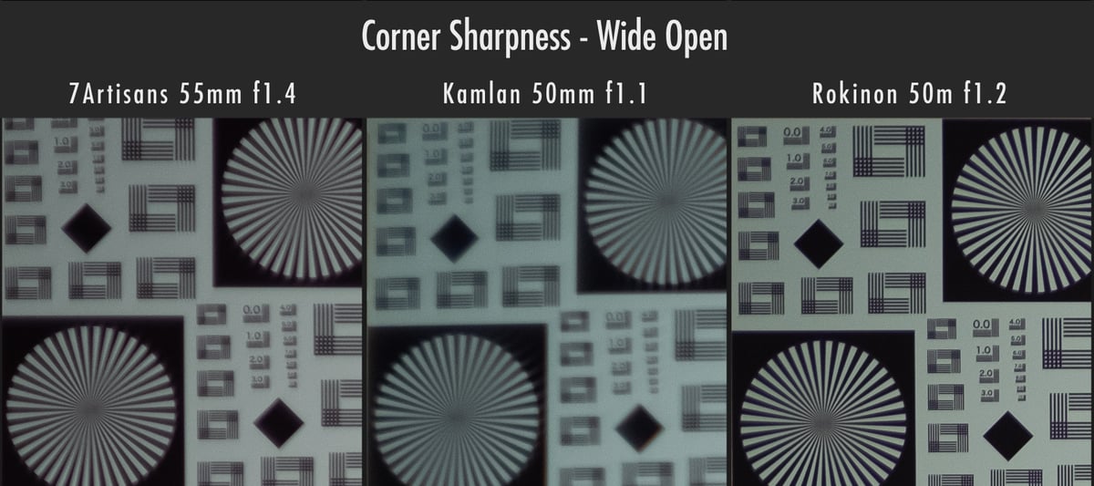 The Rokinon and 7Artisans both look good here. You can see the Kamlan lens looking not too bad especially if you were using it for portraits where corner sharpness isn’t the utmost importance.