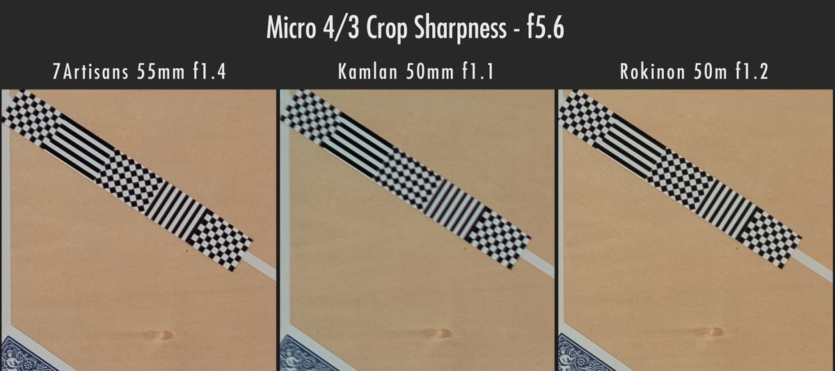 For Micro 4/3 shooters, I’ve included a crop. While I think the Kamlan is a terrible APS-C lens and the 7Artisans is clearly a better value, when you crop them all down to Micro 4/3 the Kamlan suddenly doesn’t look so bad, but it’s still inferior to the 7Artisans and Rokinon with corner and edge sharpness.