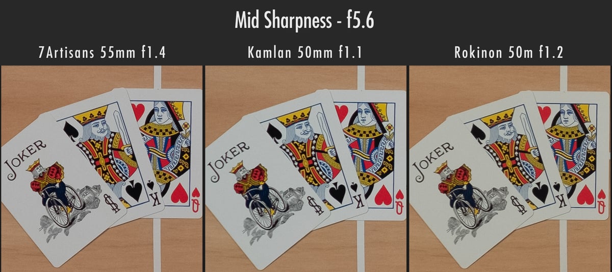 Obviously, this comparison only shows the sharpness and you shouldn’t buy a lens based on sharpness alone. Color and contrast between the Kamlan and 7Artisans is very close, and if you’re a micro 4/3 shooter the Kamlan might be the way to go. But for more money, the Rokinon is an f1.2 and is pretty much better in every way except that center sharpness where the Kamlan is superior. The Rokinon lens is also slightly bigger.