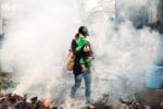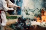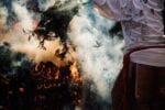 I almost never paint things out in photos like this, but in this next shot there was a blue plastic bucket right in the lower left side of the frame that I removed. This will sometimes disqualify you from a lot of NatGeo type photo contests. A way around that is to just make the image black and white to neutralize the blue. But in this case, fire and smoke really likes to be in color, and a bright blue bucket in this shot would have made it unusable. You can actually see I left it in the first few shots of this article.