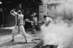 Here I am using a tight framing to show the story of the fire and the heat it creates. You can see the monk flinch back from the heat put off by the fire after he throws in some more spruce branches.