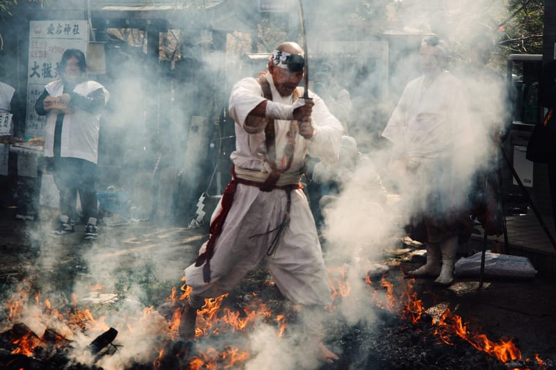The fire festival has a series of rituals involving chanting, trumpets, rope-cutting sword and axe demonstrations that surround the centerpiece, a bon fire that is used to clean and purify as well as grant wishes.