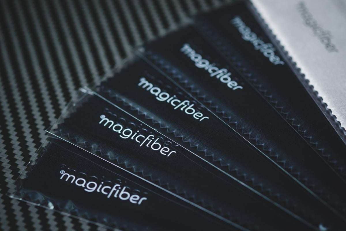 I have a bunch of these smaller magic fiber cleaning cloths and a bigger one designed for musical instruments. But these magic fibers are great because you get six of them, and you can just throw them in your camera bags.