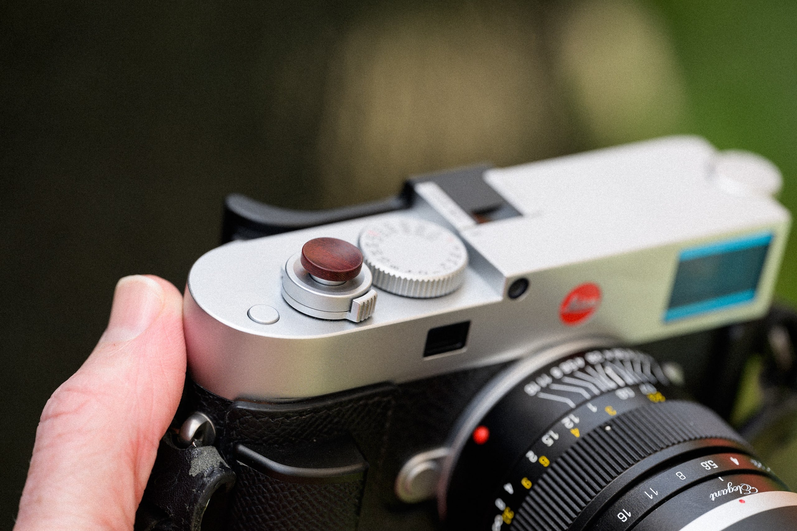 The Leica M11 is a bulkier camera, so you can use either smaller or larger soft shutters. Sizes are usually 8mm or 12mm. On some of the smaller cameras, like the Fujifilm cameras or the M film cameras, the larger size shutters sometimes don’t look right, but the 12mm size usually looks excellent on the M11. If you decide to do your own searching for soft shutters, try to get one that has a rubber washer.