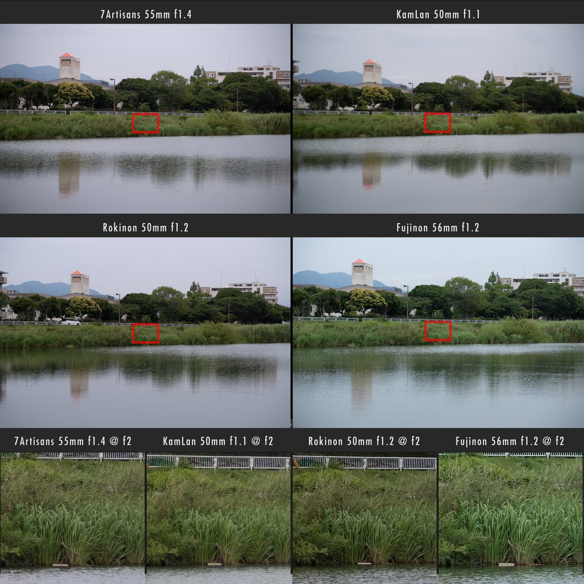 Since the Kamlan doesn’t have markers for f/1.4, I set them all to f/2. This will give a general sense of how well the lenses perform at fast apertures.