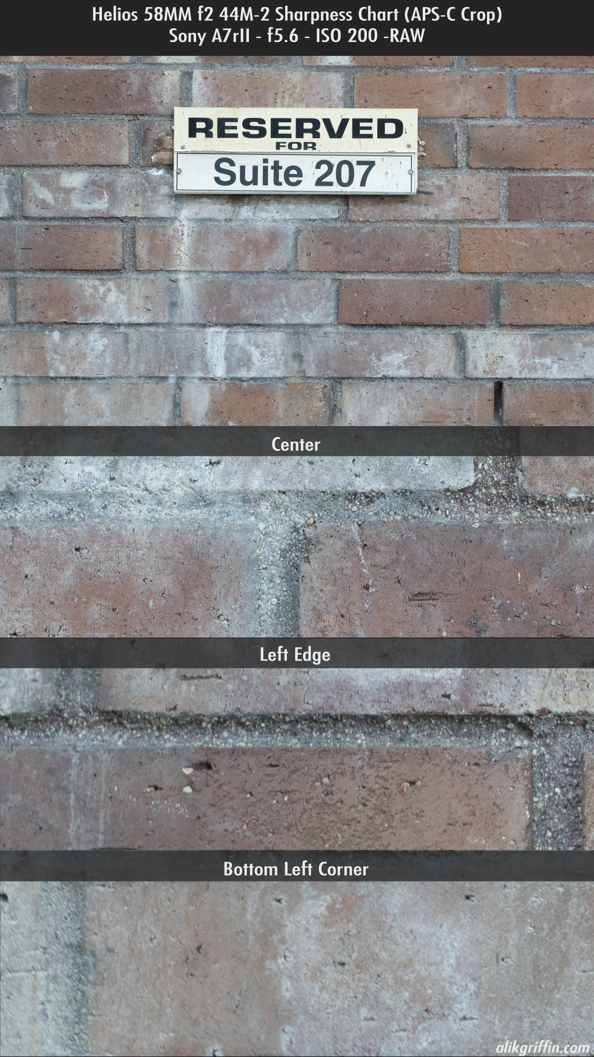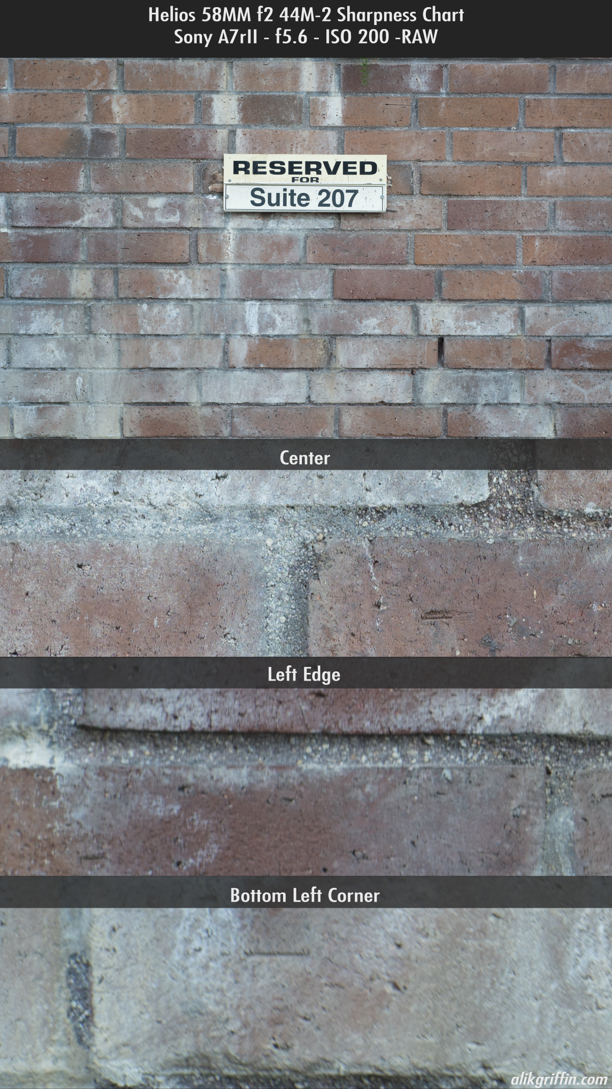 Center Sharpness is possible on the Helios 44M-2, but the edge performance is pretty bad, and the corners are even worse.