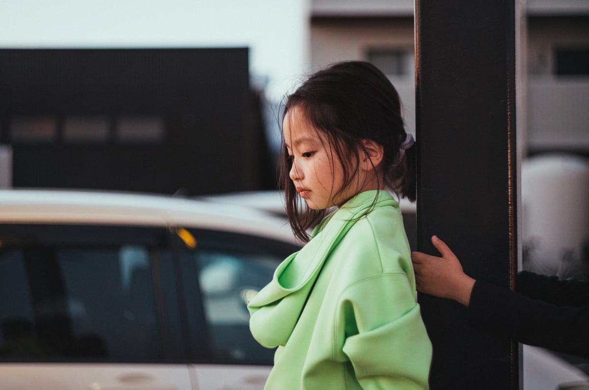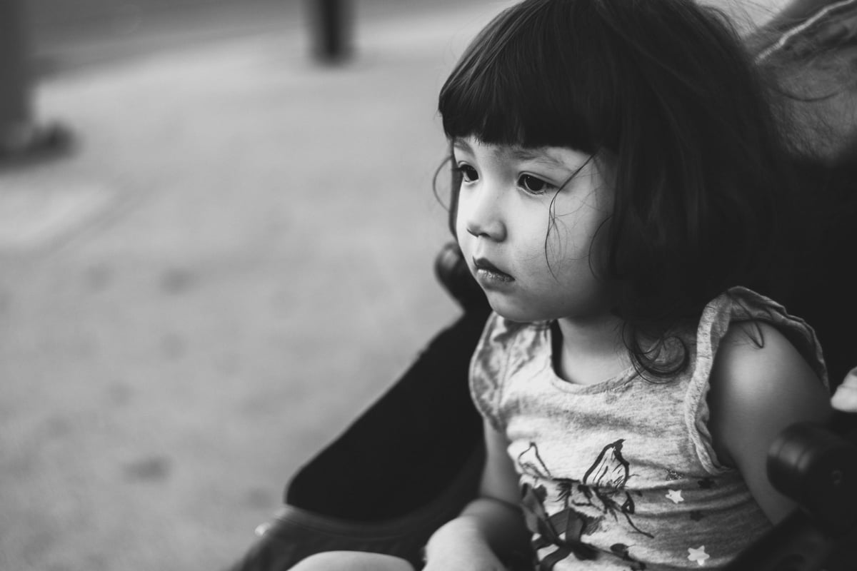 For this shot, I was at about the minimum focus distance from my daughter in her car seat, focusing on her eyelids. I was somewhere around f5.6.