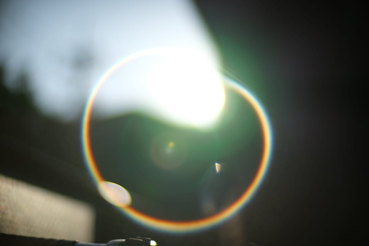 Flaring creates an interesting pattern. A large ring with a few circles in the middle if the angle is right. For the most part, flaring is pretty well controlled unless you’re shooting directly into bright lights.