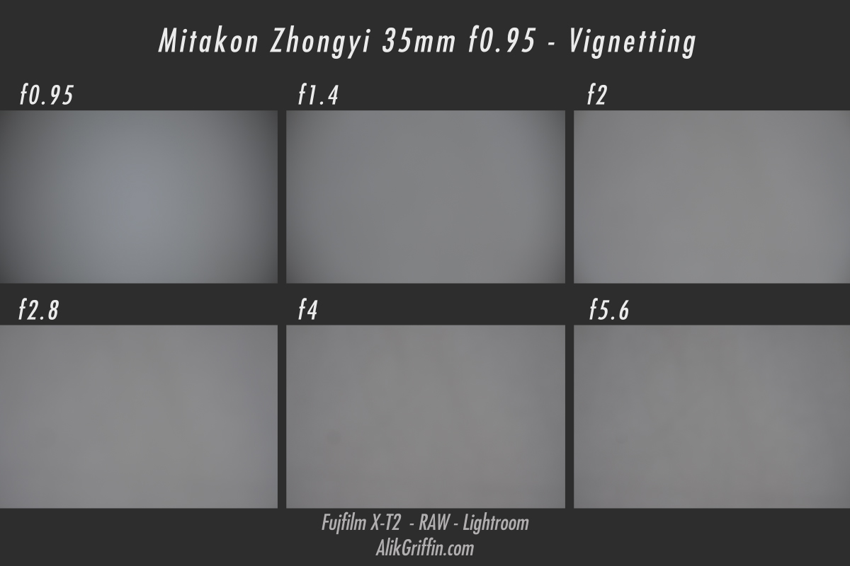 Vignetting is a little bit of a problem at f0.95, by f1.4 it eases up a bit. By f2, it’s mainly controlled.