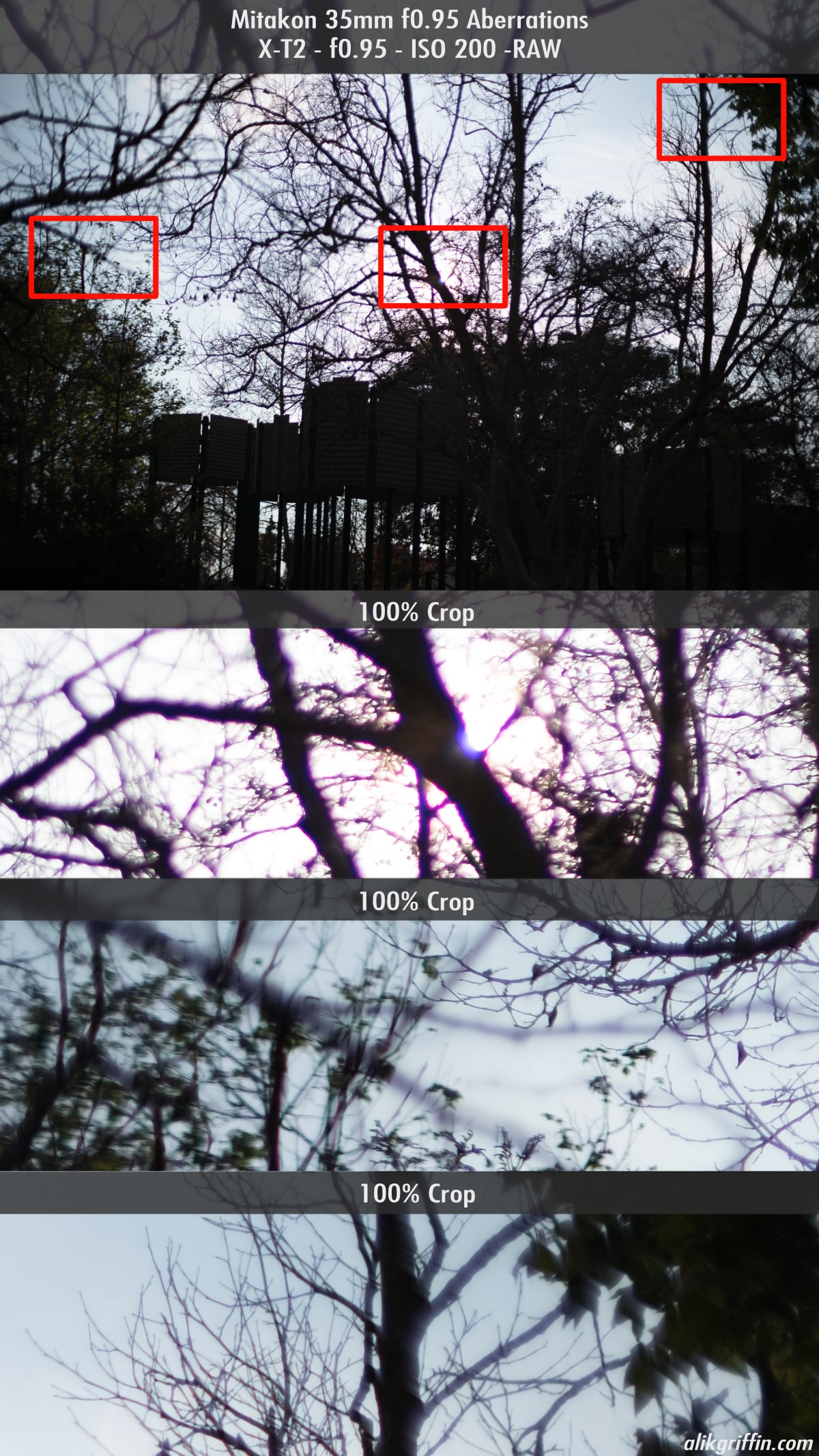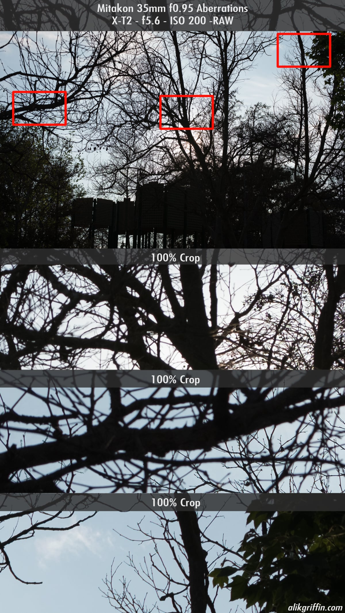 Chromatic Aberrations are very well controlled with this lens. In extreme conditions, you can see some longitudinal chromatic aberrations at f0.95. You typically won’t see them in real-world shooting conditions as you do in this sample.