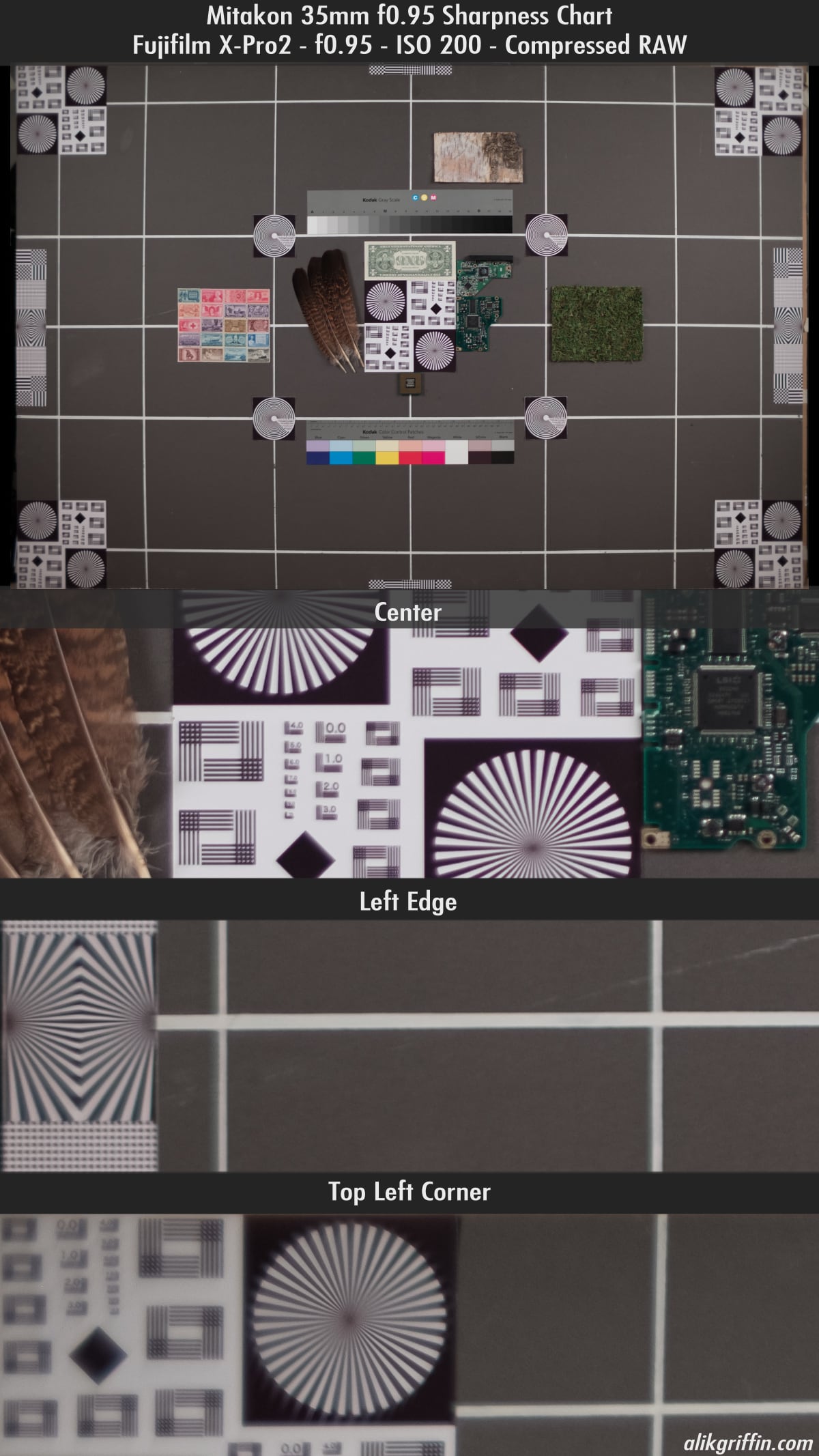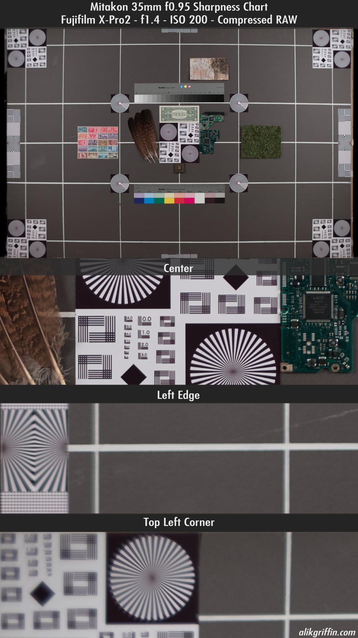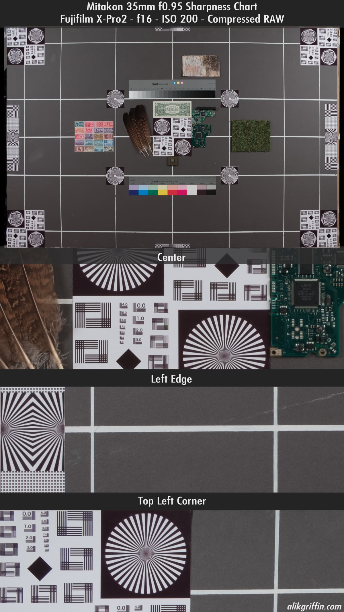 When comparing the Fujinon 35mm f1.4, the Fujinon 35mm f2, and the 7Artisans 35mm f2, the Mitakon is actually the sharpest at f2.