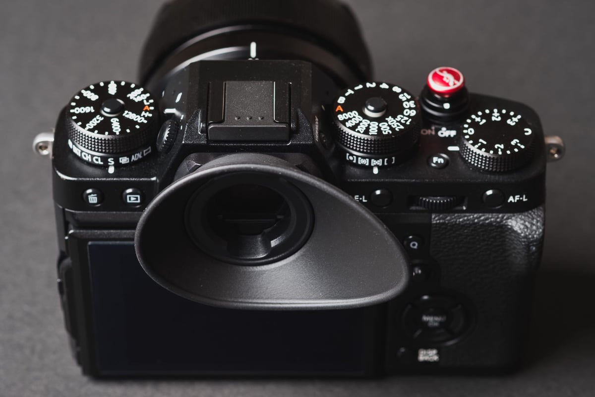 Long EyecupAvailable At: Amazon The Fujifilm large eyecup is found on the X-H1. This eyecup allows your face and nose to sit further back from the screen, making you less likely to touch the screen with your face.