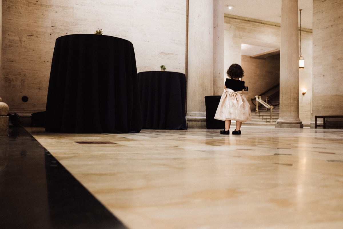 The wedding was held at the Natural History Museum of Los Angeles, which is very kid-friendly, and they were serving alcohol next to the skeletons of a T Rex and a Triceratops. It doesn’t get any cooler than that.